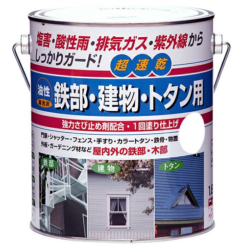 他の画像を見る 特殊アクリル樹脂塗料ペイント・つやあり/つやなし 超速乾 密着性抜群 油性塗料油性 鉄部・建物・トタン用 1.6L 当店特別価格 ¥ 4,280 税込 超速乾・密着性抜群の多用途型油性塗料 カートに入れる お気に入りに登録する