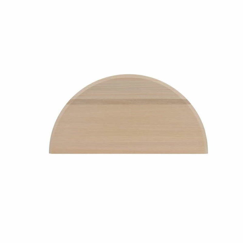 国産ひのき材に広葉樹を1本挟んだOBEEシリーズ。クセントとなる広葉樹の帯がシンプルで高級感を演出しております。15mm厚の棚板にエッジワークを施し厚みを感じさせない角度で仕上げており、スタイリッシュな仕上がりとなっています。半円タイプの棚板です。