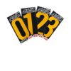 裏紙を剥がして貼って圧着するだけで簡単にナンバーの表示ができます。アルミ基材なので、ねじれに強く汚れがつきにくいです。サイズは高さ280mm 、色は「白」と「黄」の2色。駐車場や工場、倉庫などの床面、壁の区画、各種表示に。