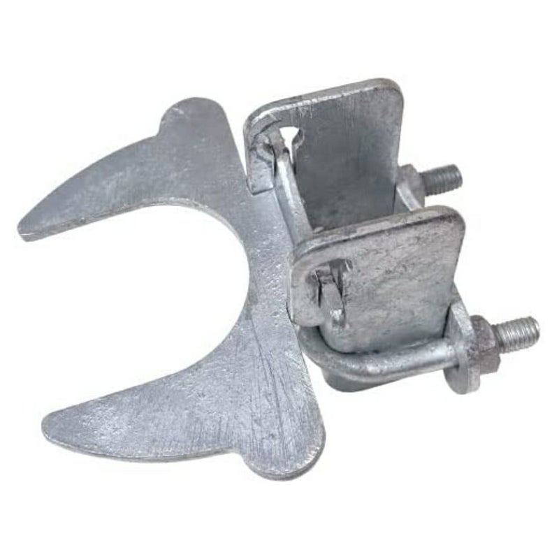 アメリカンフェンス専用の掛け金錠です。別売りのドアヒンジを取り付けて作成したフェンス扉を簡易ロックすることができます。フェンスサイドにはめ込み、ナットで締めるだけで固定可能なシンプルな仕様。ドアラッチをフェンス扉に取り付け、掛け金をもう一方の単管にハマるように倒すだけで簡単に扉を固定することができます。48.6mm程度の単管パイプと接続可能。
