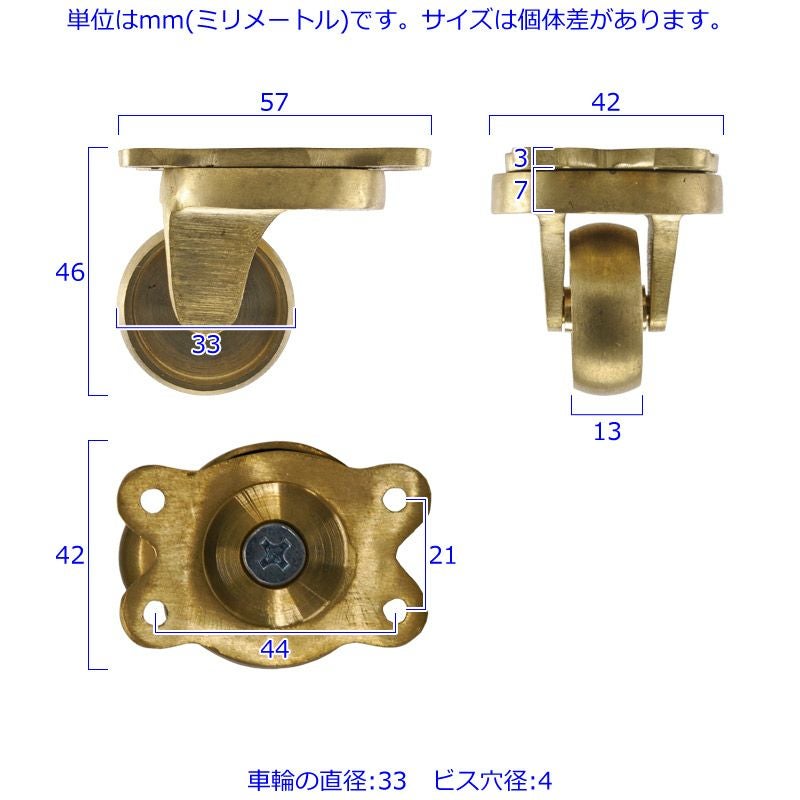 他の画像を見る 真鍮金物・アンティーク調・DIY 真鍮 小型 キャスター CASTER35 約147g 当店特別価格 ¥ 6,280 税込 真鍮製のアンティーク調小型キャスター カートに入れる お気に入りに登録する