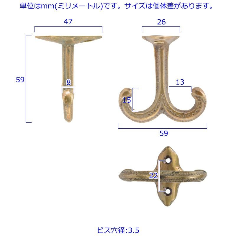 他の画像を見る 真鍮金物・アンティーク調・DIY 真鍮 アンティーク フック COAT&HAT HOOK 約309g 当店特別価格 ¥ 5,620 税込 真鍮製のアンティーク調フック カートに入れる お気に入りに登録する
