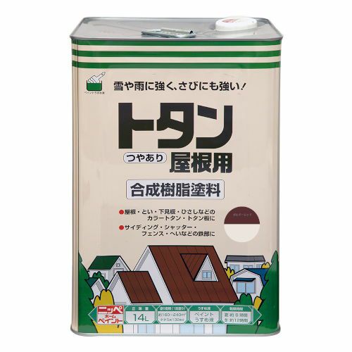 日光や風雨に対して、優れた耐久性を持つ合成樹脂塗料です。さび止め効果に優れ、トタンを保護します。トタンに対する密着性に優れ、美しい色とツヤが長持ちします。