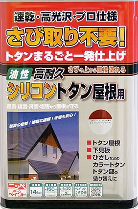 他の画像を見る 特殊シリコンアクリル樹脂塗料・つやあり トタン屋根 さびに直接塗れる 油性塗料高耐久シリコントタン屋根用 14kg 赤さび・こげちゃ・黒など 当店特別価格 ¥ 21,800 税込 さびの上からそのまま塗れる!トタン用高光沢塗料 カートに入れる お気に入りに登録する