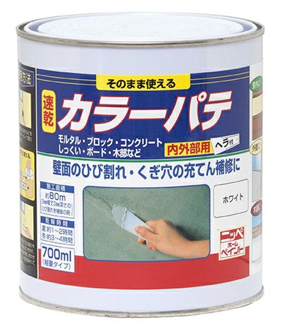 他の画像を見る アクリル樹脂下地剤 壁 ひび割れ・くぎ穴の充填 補修 パテカラーパテ 700ml ホワイト 当店特別価格 ¥ 1,480 税込 壁面のひび割れ・くぎ穴の充てん補修に カートに入れる お気に入りに登録する