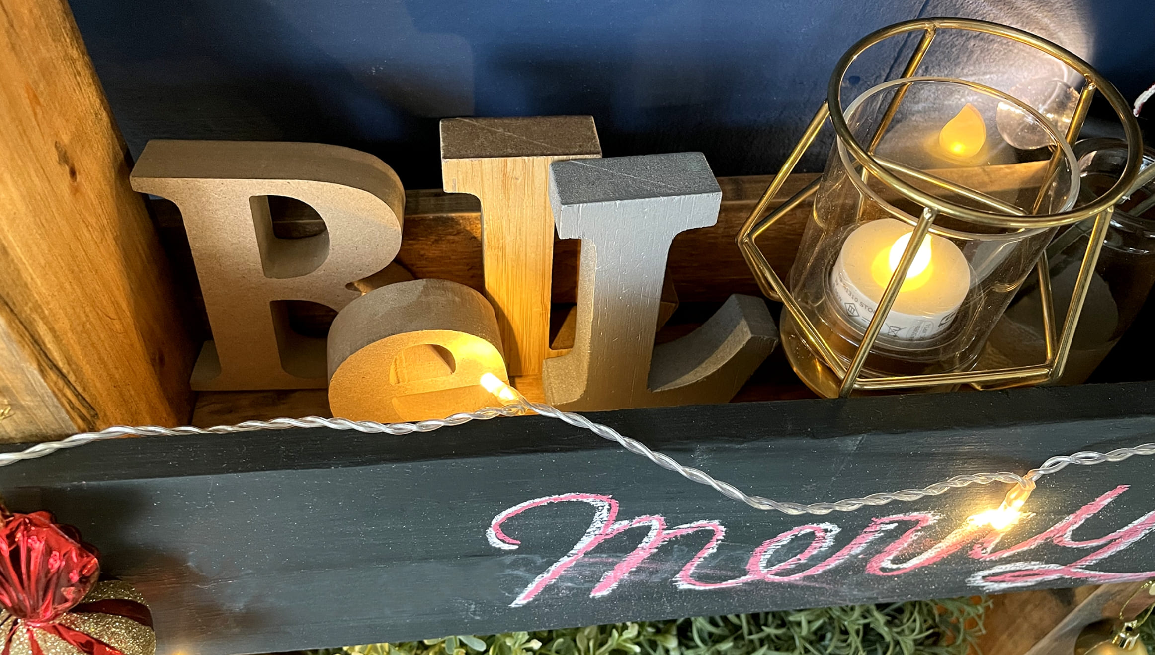 既にある物を寄せ集めてみました。100均のキャンドルライトがいい感じです。