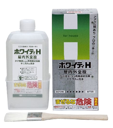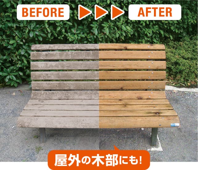 屋内外木部のかび、藻の除去に。木部の漂白に。