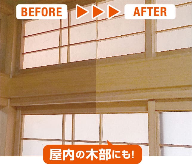 屋内外の未塗装木部(ウッドデッキや柱、障子枠などの白木に)
