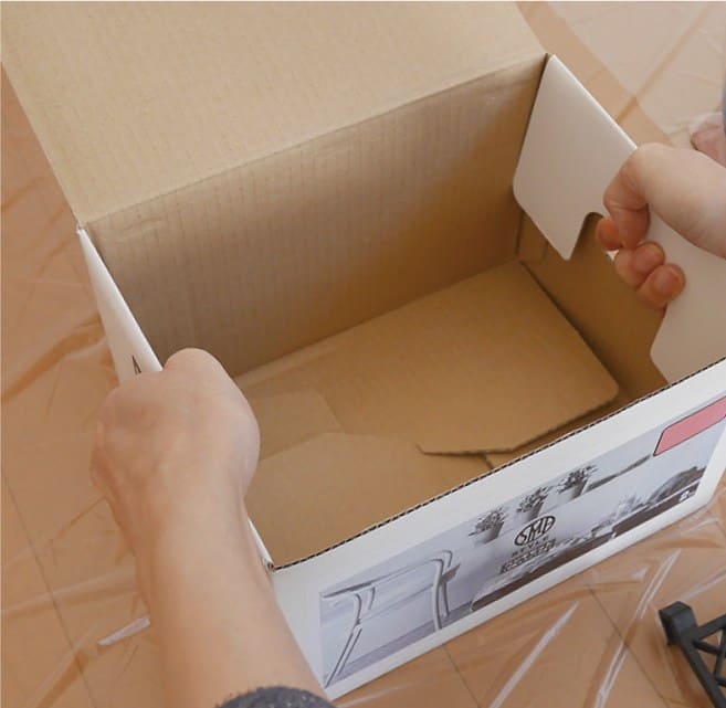 「オールインワン」・・・外装の段ボール自体が容器になり、付属の内容器とローラーネットをセットして、すぐに使用することができます。