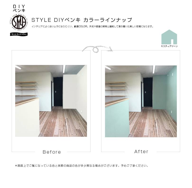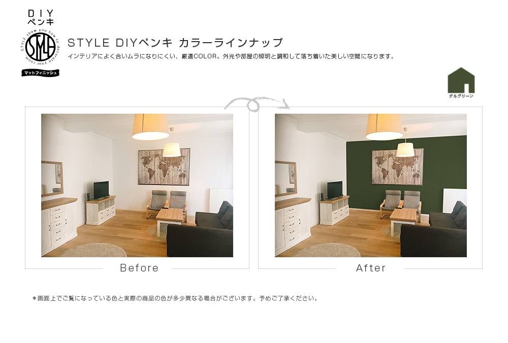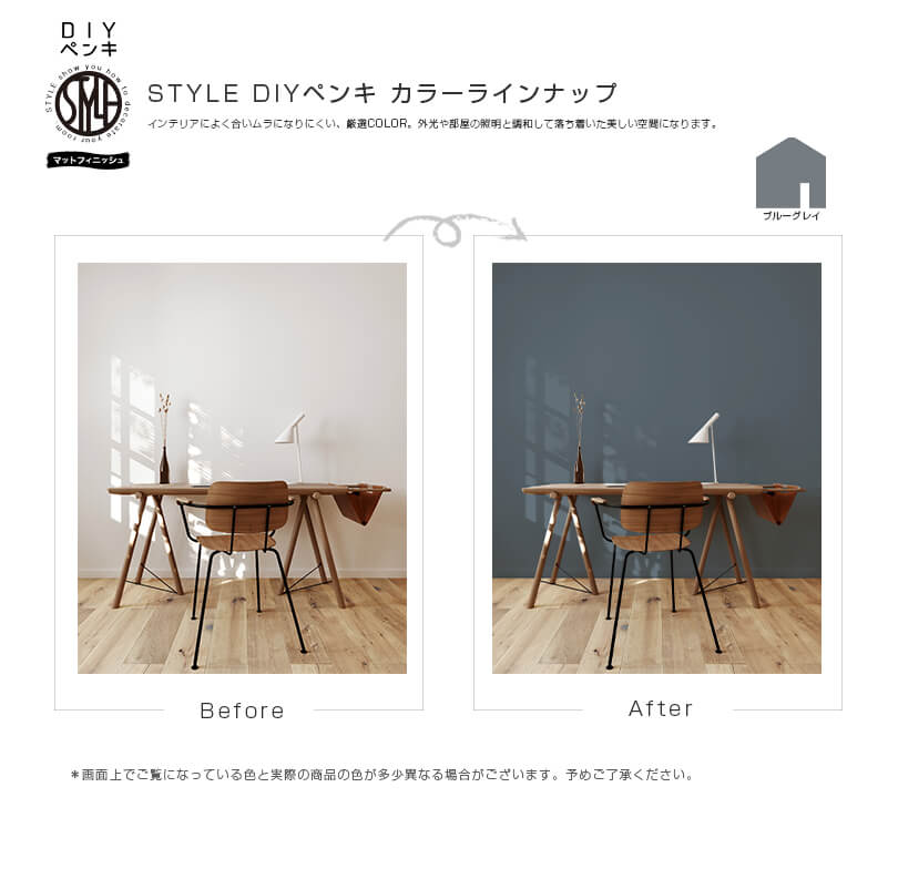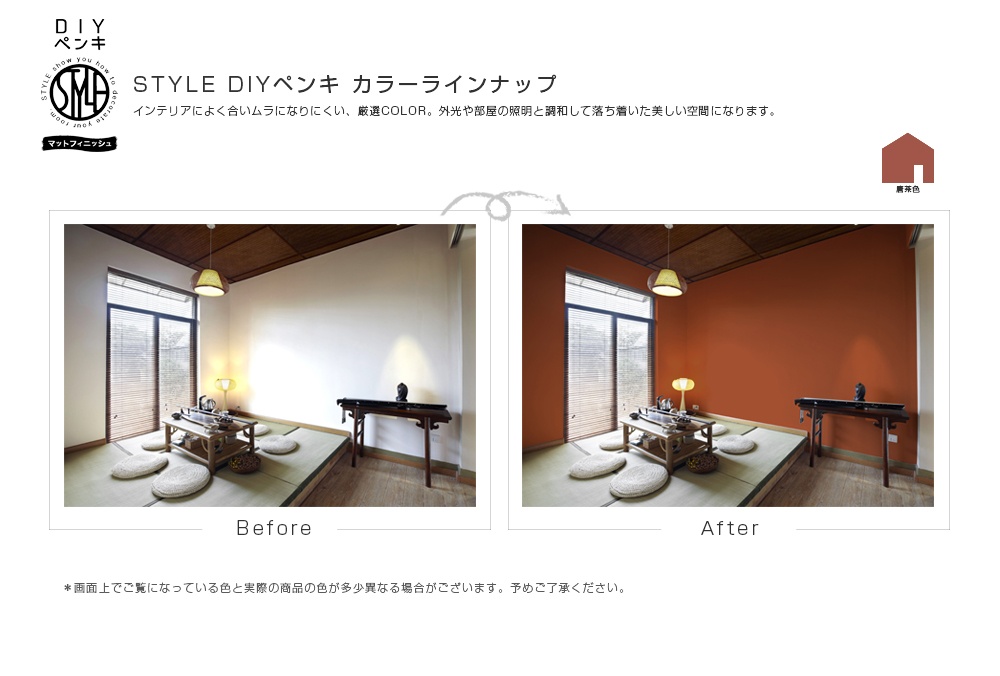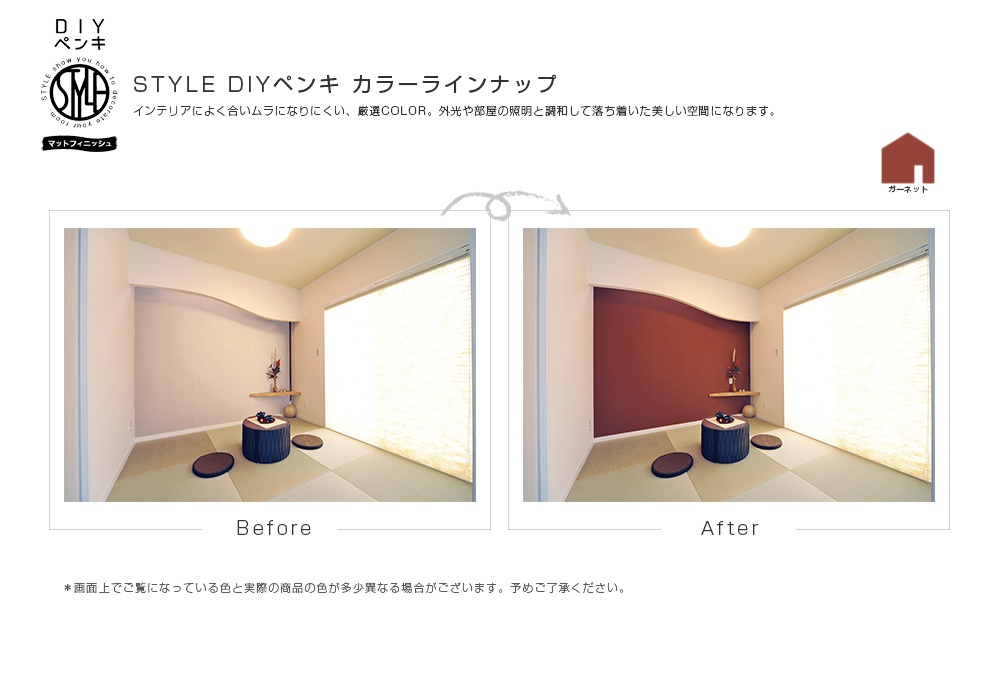 乾燥後はローラー跡が目立たない、落ち着いたつやの仕上がり