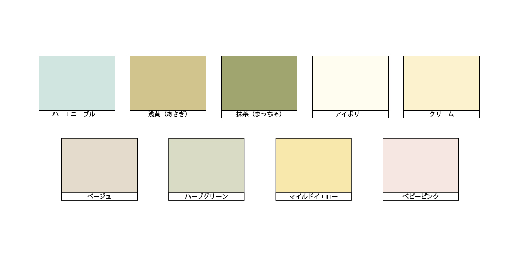 ※ディスプレイの種類や光の加減によって画面上に表示される色は実際のペイントの色と異なる場合がございます。