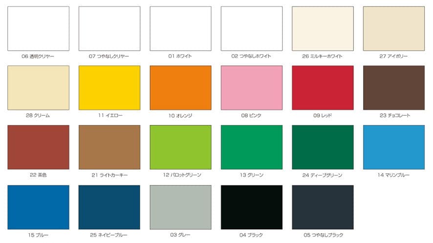※ディスプレイの種類や光の加減によって画面上に表示される色は実際のペイントの色と異なる場合がございます。