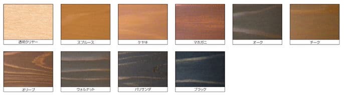 - 木目を生かした半透明仕上げができ、色アセが少ない透明な色調で屋外木部用として最適です。