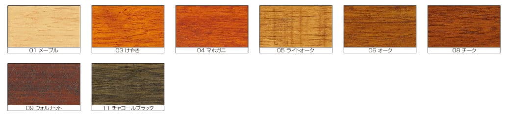 - 木目を生かした半透明仕上げができ、紫外線吸収剤(UVカット)により、色アセ・劣化を防止します。