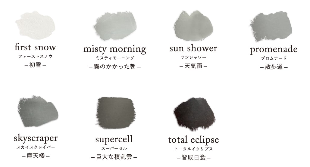 ※ディスプレイの種類や光の加減によって画面上に表示される色は実際のペイントの色と異なる場合がございます。