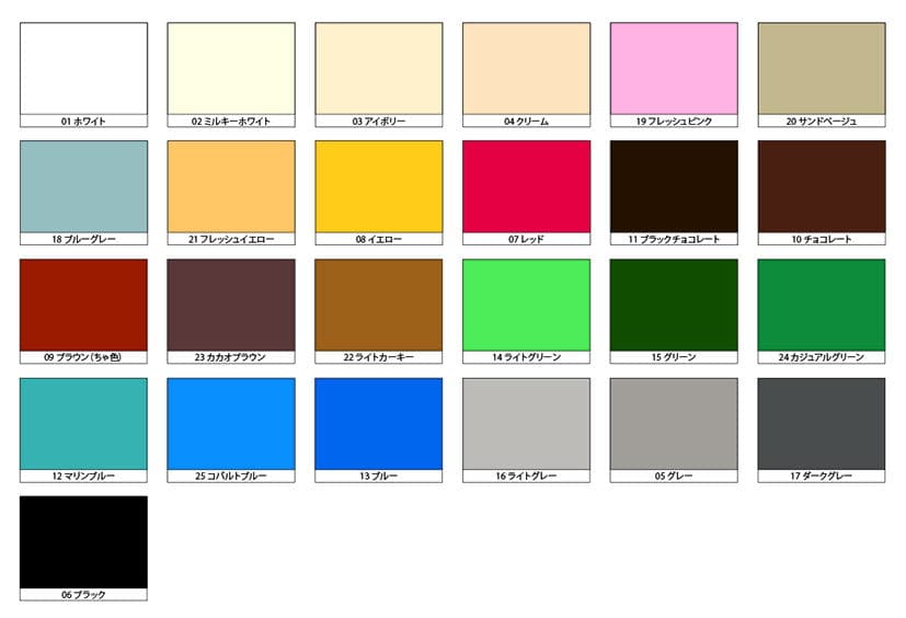 ※ディスプレイの種類や光の加減によって画面上に表示される色は実際のペイントの色と異なる場合がございます。