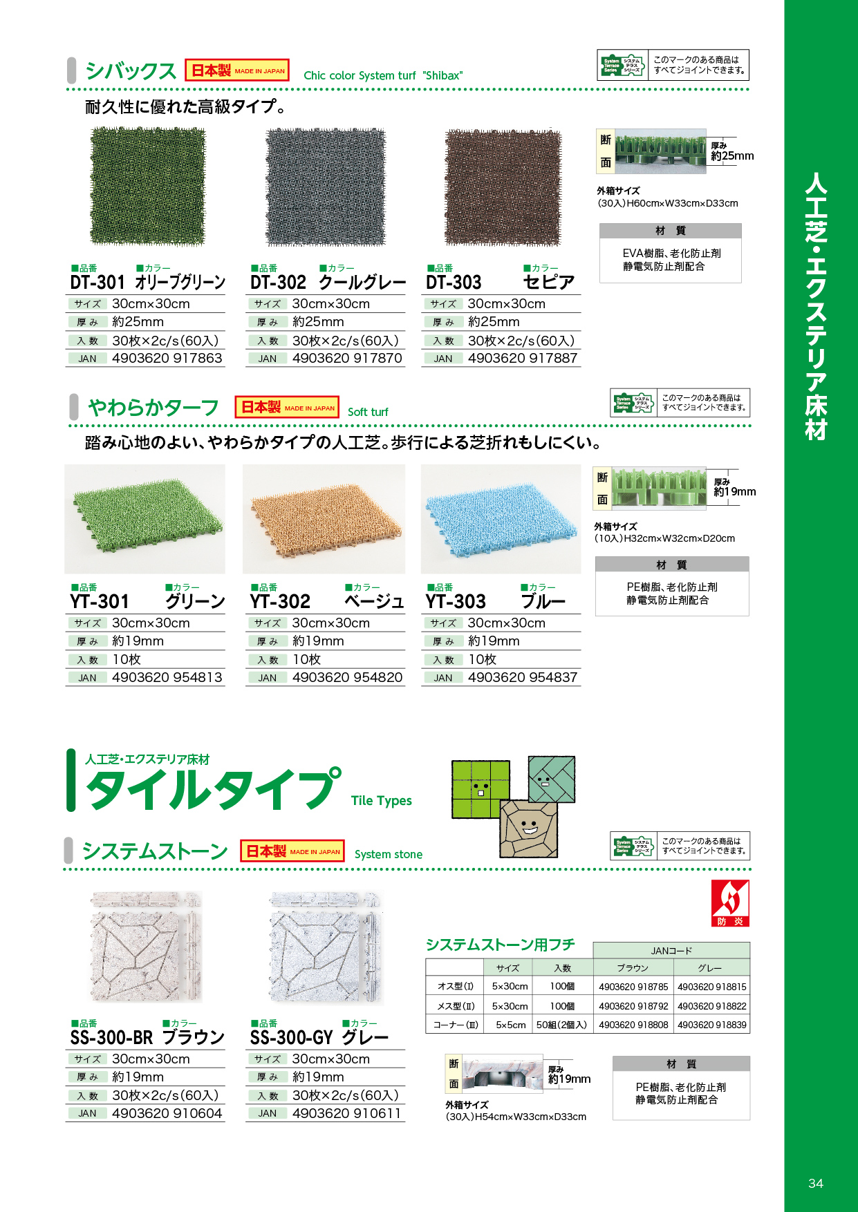 ジョイント人工芝 シバックス 25mm厚 30枚入りセット 30cm×30cm