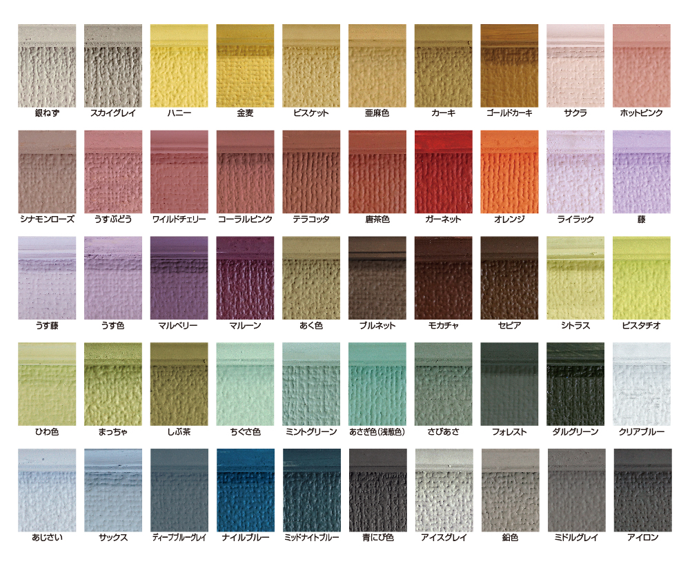 ※ディスプレイの種類や光の加減によって画面上に表示される色は実際のペイントの色と異なる場合がございます。