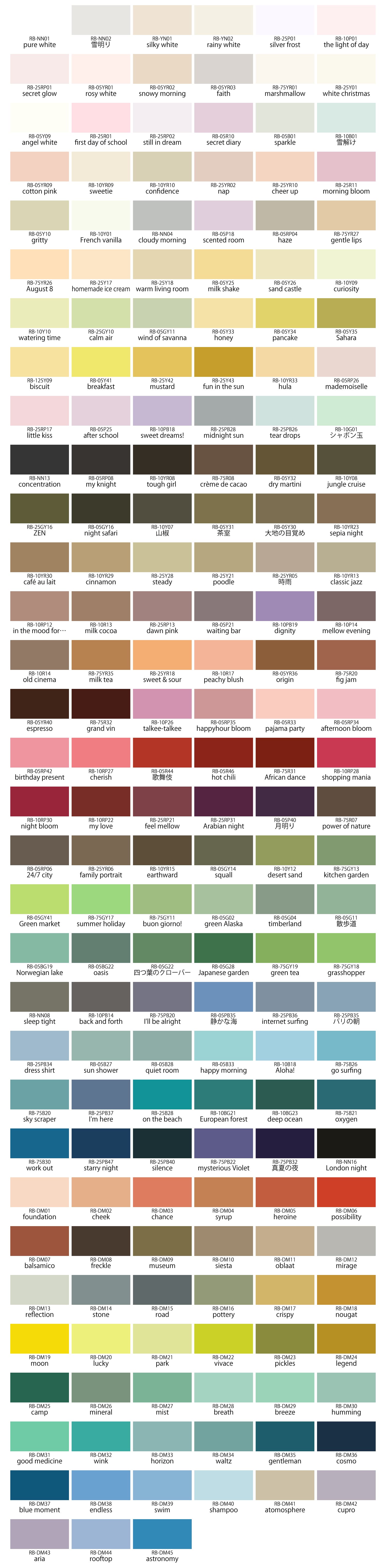 ※ディスプレイの種類や光の加減によって画面上に表示される色は実際のペイントの色と異なる場合がございます。
