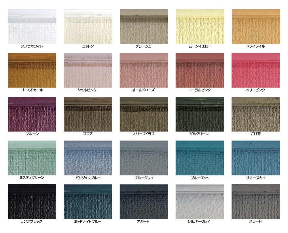 ※ディスプレイの種類や光の加減によって画面上に表示される色は実際のペイントの色と異なる場合がございます。