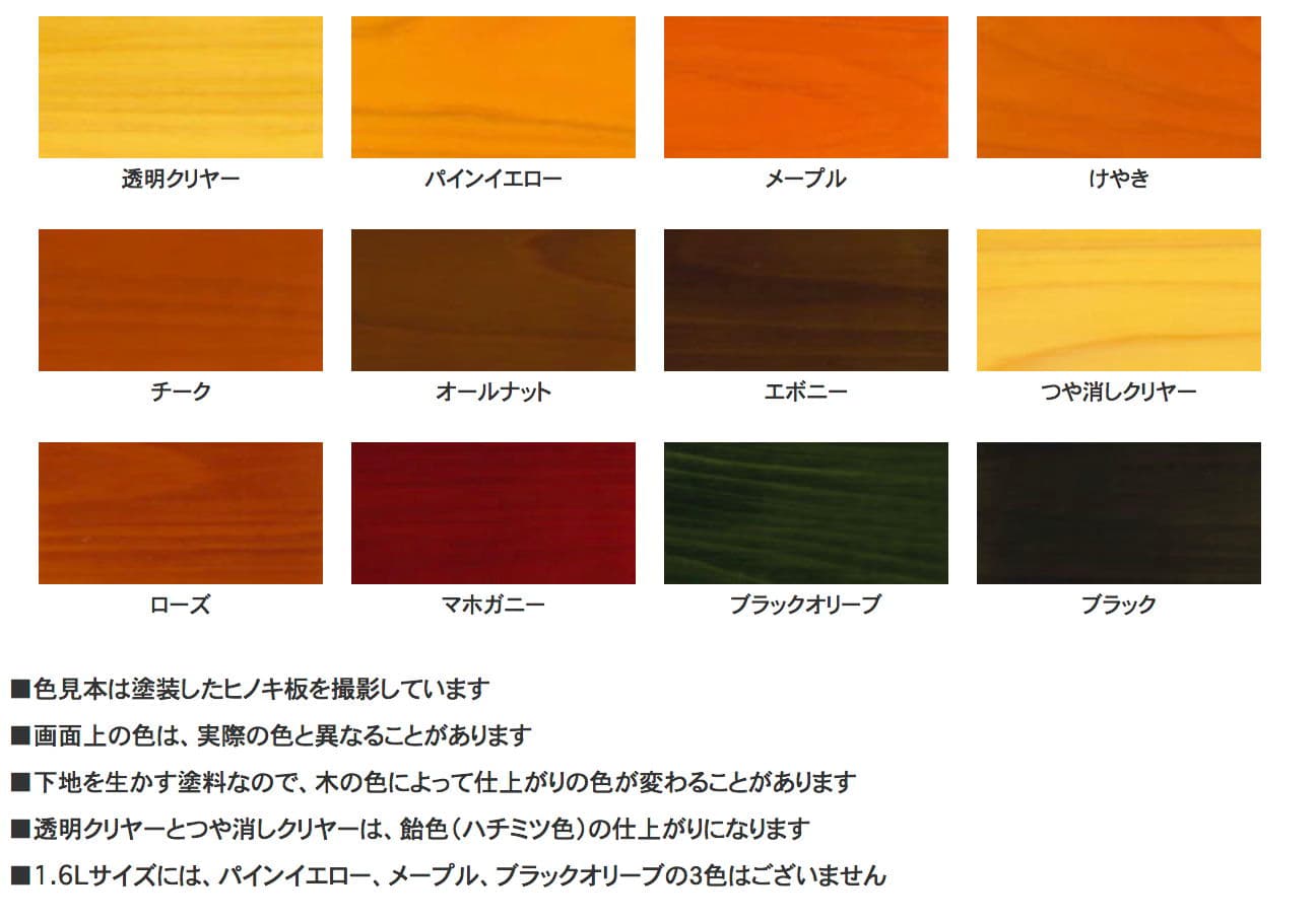 - ●透明クリヤーやつや消しクリヤーでも飴色になるので、下地の色を生かしたい場合は不向きです。