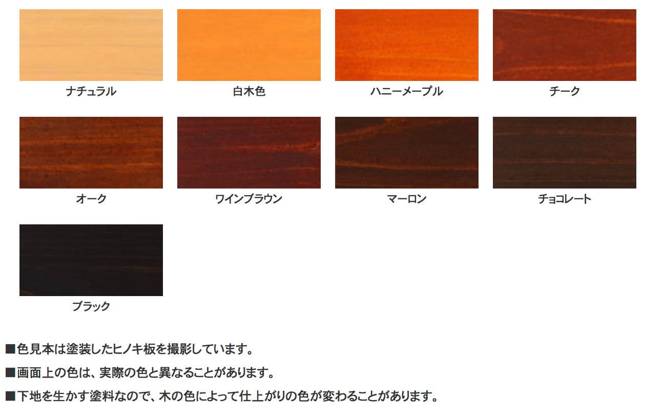 - 木の表面に膜を作らない、木に染みこんで保護する塗料です。