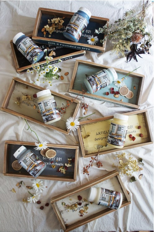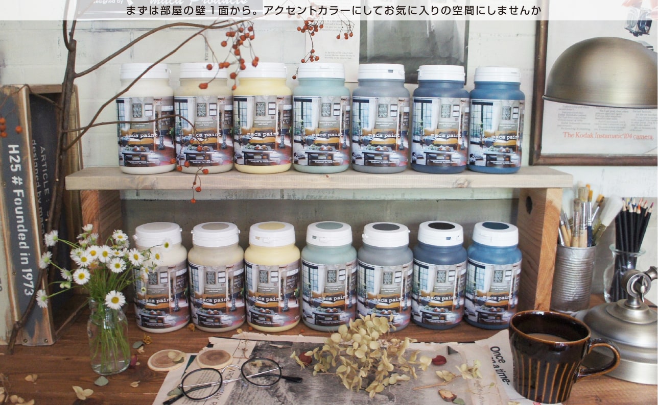 インテリアの壁や小物、ガーデニング材にも塗れる屋内外用の水性ペンキ