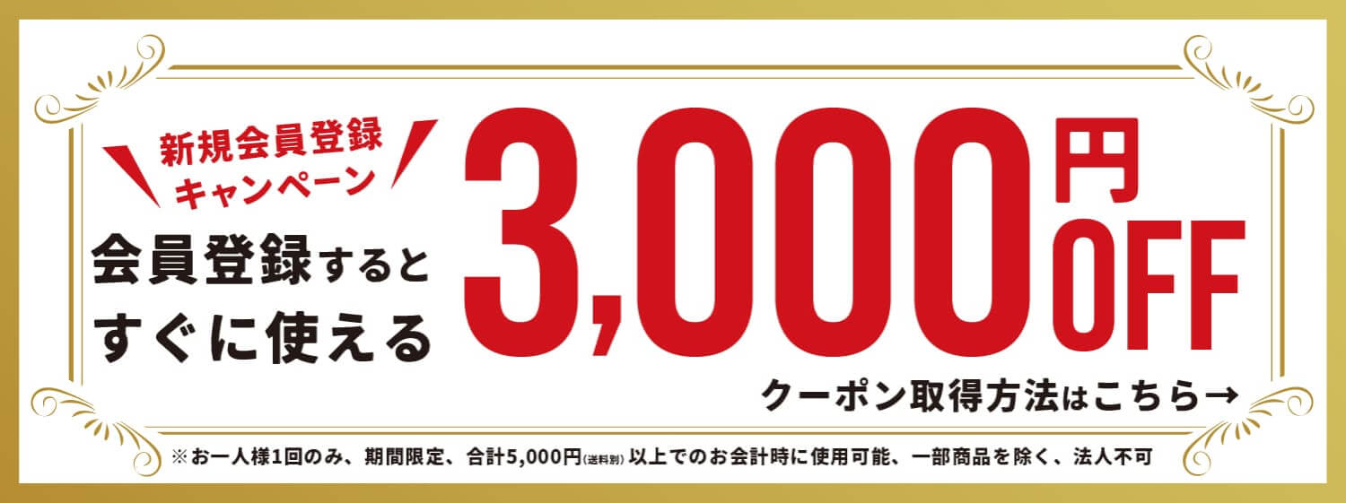 【ご要望にお応えして!】新規会員登録で全商品3,000円オフクーポン配布中!【期間限定】