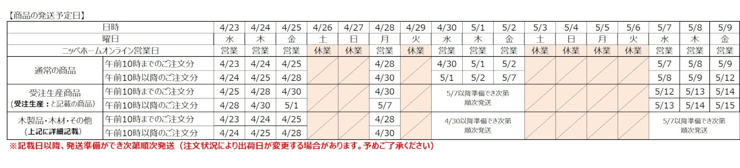 休業期間中もニッペホームオンラインでのご注文、お問合せ等は随時受け付けておりますが、ご対応等は休業期間明けとさせていただきます。