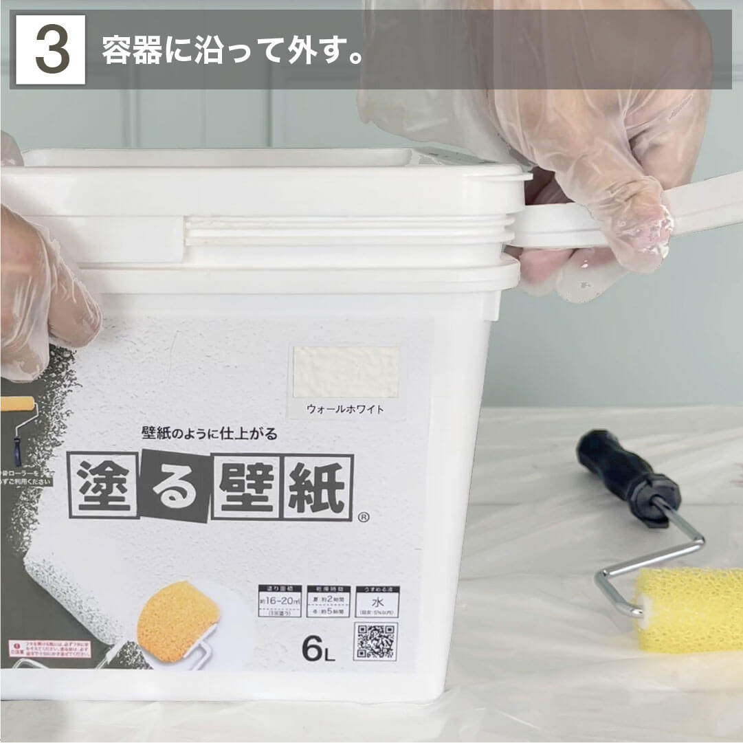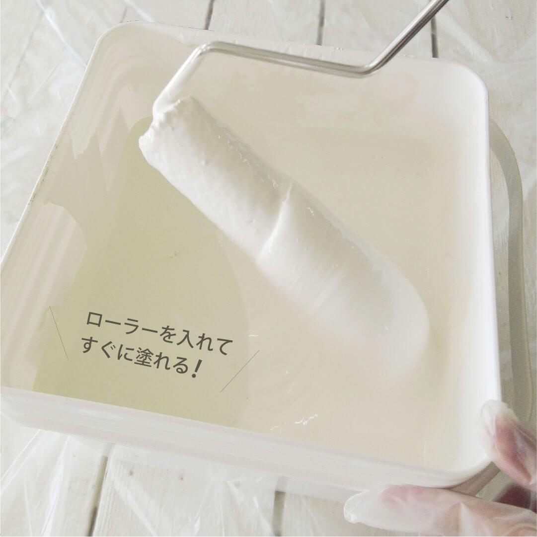広口の容器なので、ローラーを直接差し込んでそのまま塗ることができ、