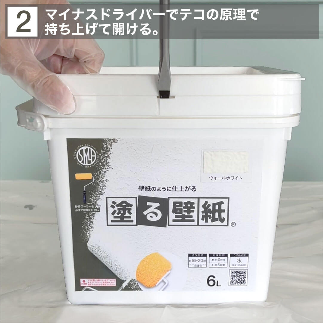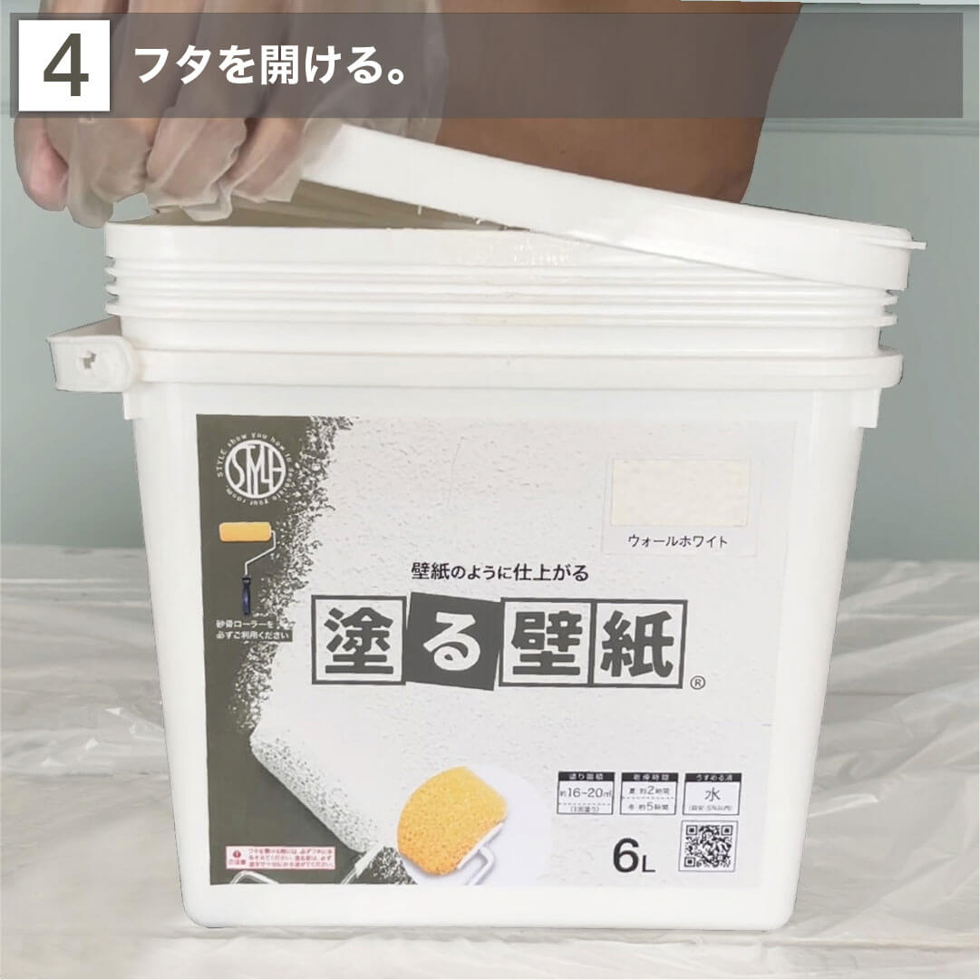 5. フタつきの広口タイプなのでローラーがそのまま入りすぐに塗ることができます。