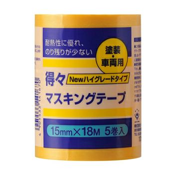 屋内 養生・マスキングテープ 内装可能得々マスキングテープ NEW-HG 黄 5巻パック 15mm×18Mのレビューを書く