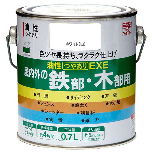 他の画像を見る 合成樹脂調合ペイント・つやあり 【廃番品処分セール 40%OFF】色つや長持ち 多用途 油性塗料油性つやありEXE 0.7L 通常販売価格 ¥ 1,680 のところ 当店特別価格 ¥ 1,008 税込 色つや長持ち!日光や雨に強い油性つやあり多用途塗料 カートに入れる お気に入りに登録する