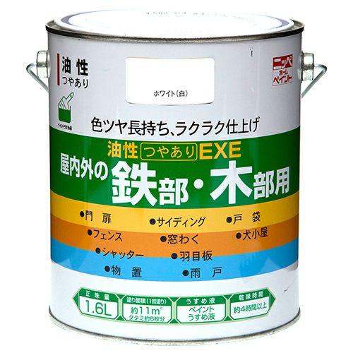 他の画像を見る 合成樹脂調合ペイント・つやあり 【廃番品処分セール 50%OFF】色つや長持ち 多用途 油性塗料油性つやありEXE 1.6L 通常販売価格 ¥ 3,880 のところ 当店特別価格 ¥ 1,940 税込 色つや長持ち!日光や雨に強い油性つやあり多用途塗料 カートに入れる お気に入りに登録する