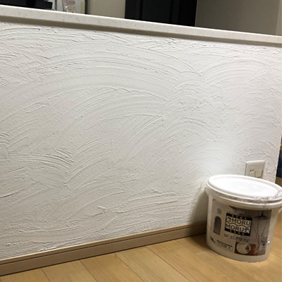 手だけで壁紙の上からも塗れる壁用仕上・補修材「MORUMORU」は